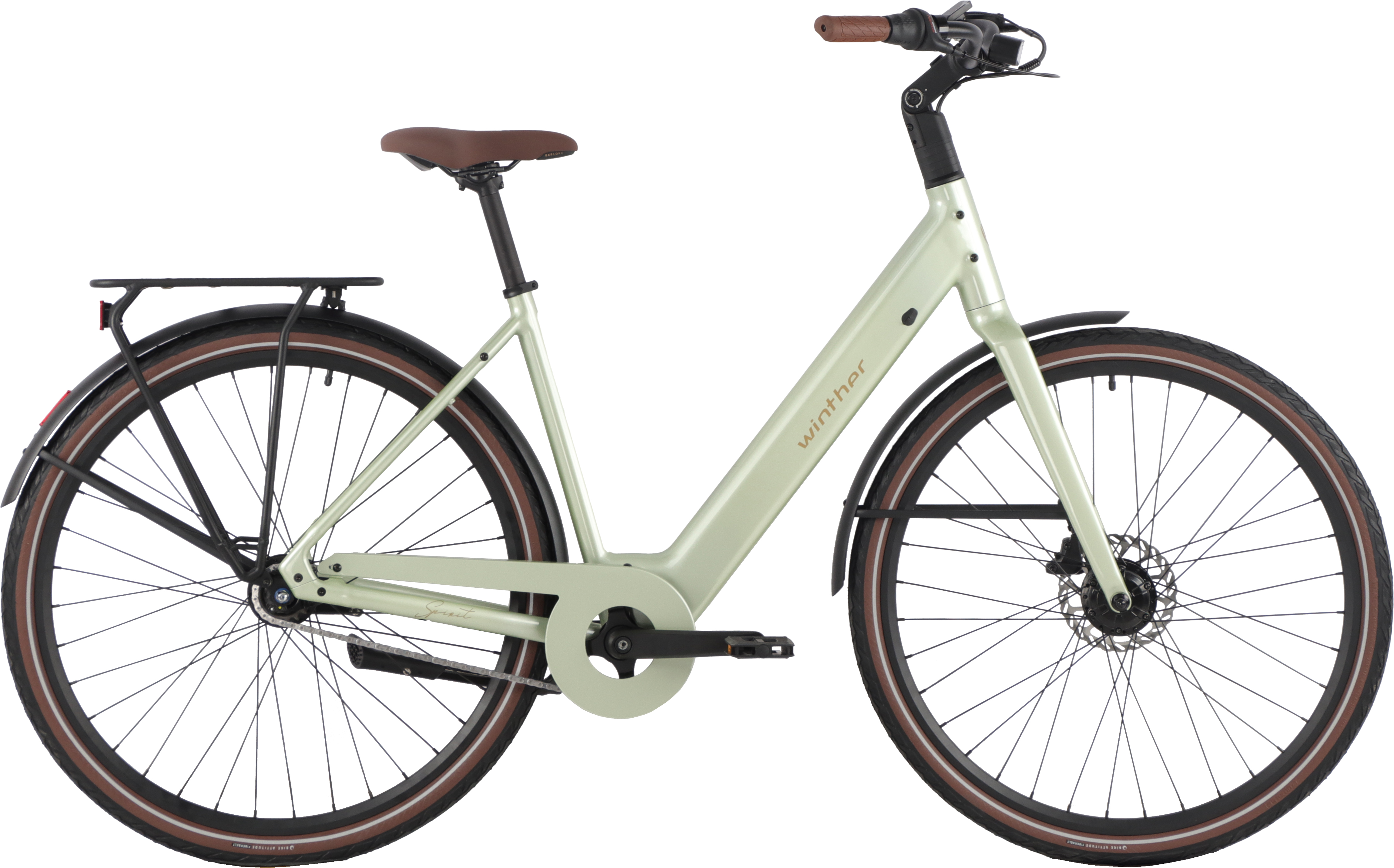 Spirit är utrustad med ett avtagbart batteri som är vackert integrerat i ramen. Samtidigt är den mycket effektiv och säkerställer en lång räckvidd på upp till 80 km. Den har integrerade lampor och en multifunktionell pakethållare, där antingen en korg, väska eller en barnstol kan monteras.